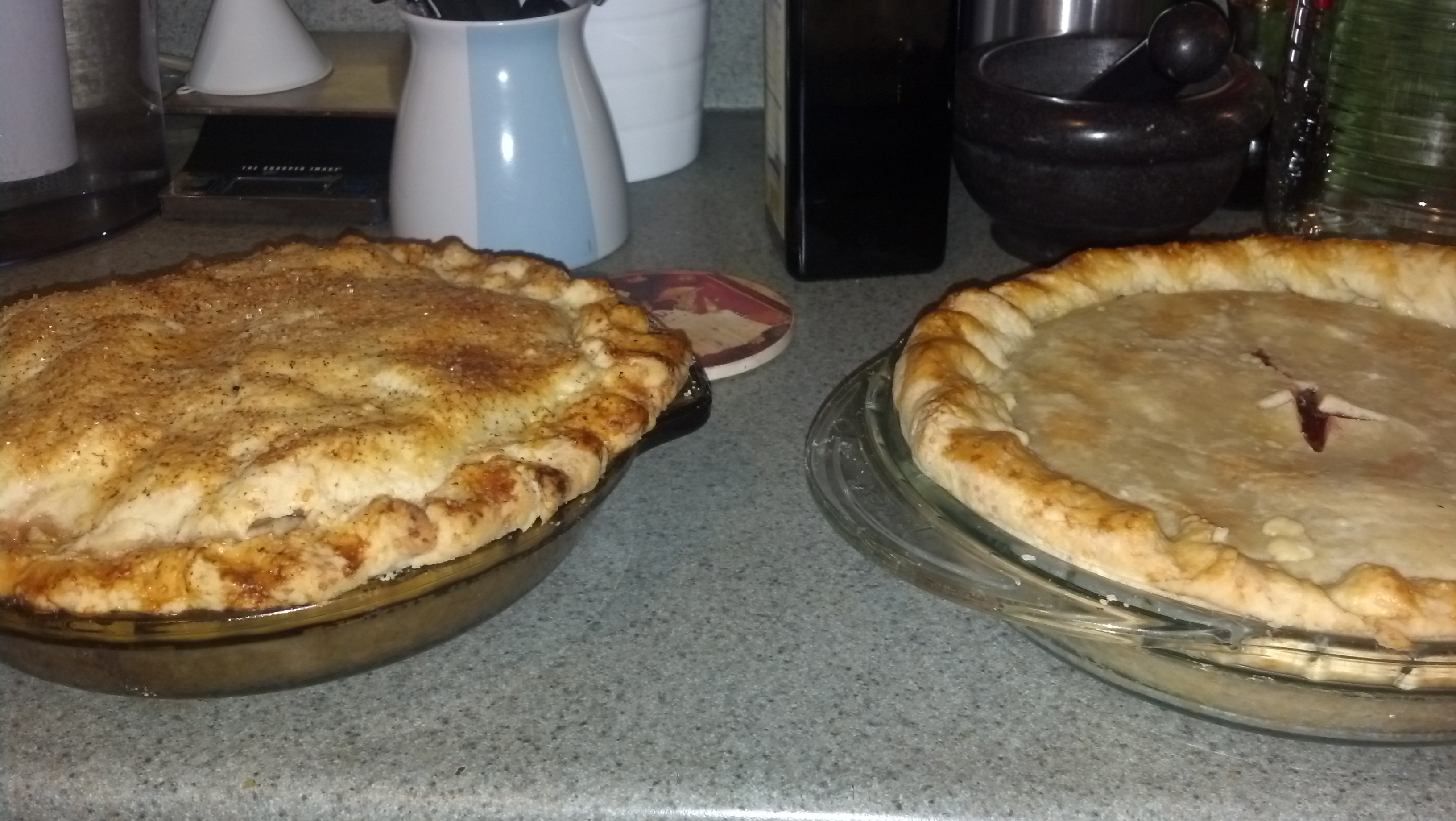 Since my boss is in town, and she’s a nice lady, I made a full size version of that cherry cordial mini pie and a drunken apple pie. https://gojohnego1.wordpress.com/2013/03/17/cuisine-teensy-weensy-little-pie/