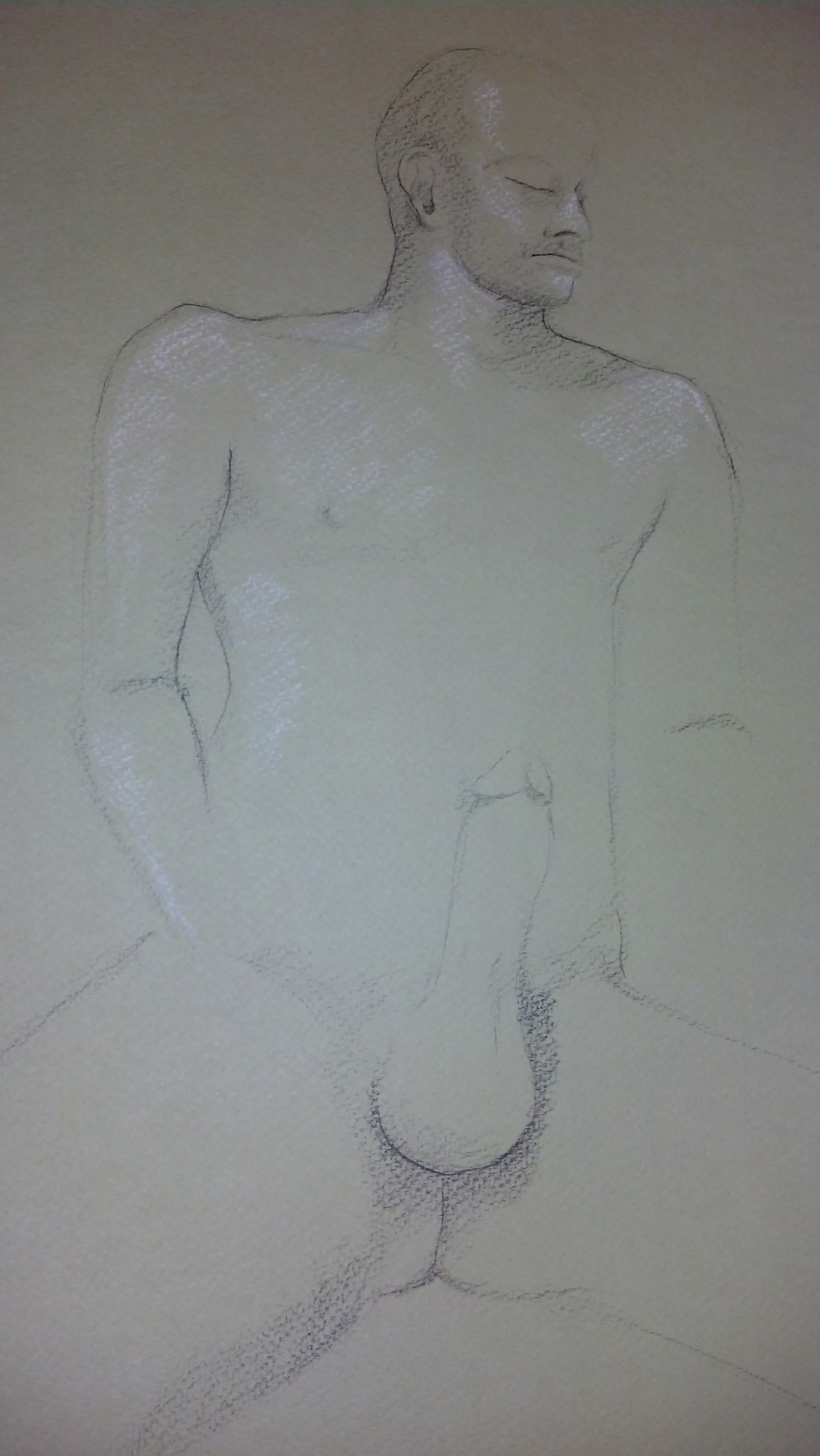 Brand new model tonight. Its a bit disconcerting and erotic when a model’s gaze isn’t still during his pose, even though most of his body is.