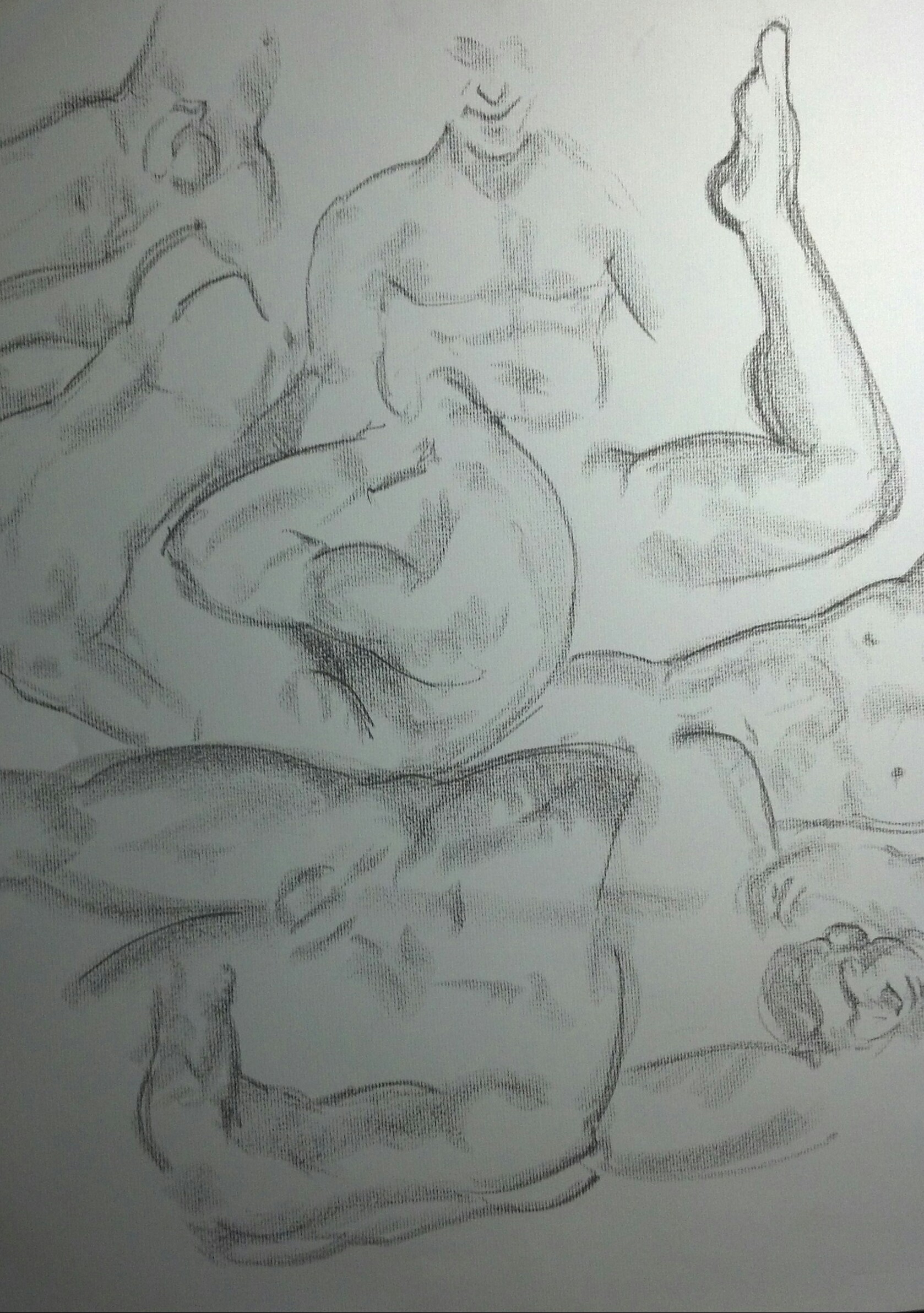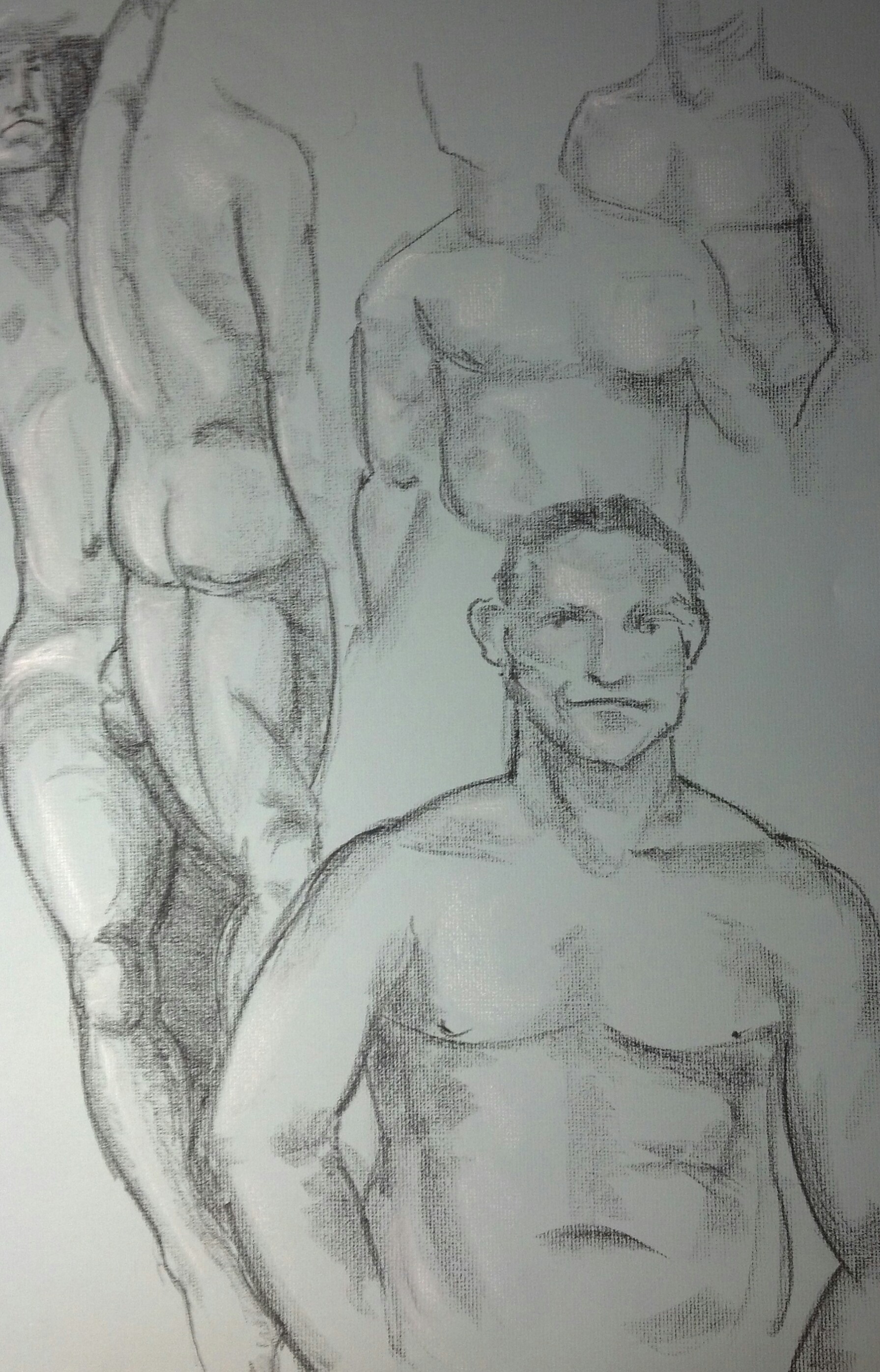 We tried something new tonight, hence two drawings. One drawing was done at various time intervals of 10-15 minutes. The other was done as John posted for 90 seconds, changed position, and repeated for a total of 10 poses @ 90 seconds each.