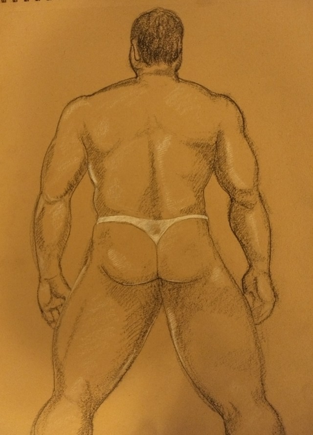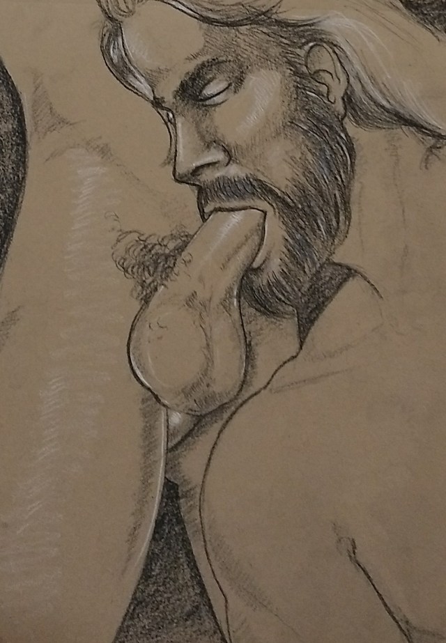 Drew three times this weekend. One session at the local bar – mainly fantasies inspired by porn and the patrons, the second with a friend followed a few drinks at my local hangout, and the third was a local model I’ve drawn before, but encouraged to allow himself to think erotically if he felt inclined.