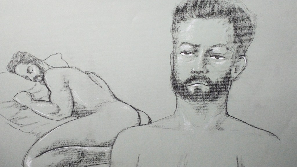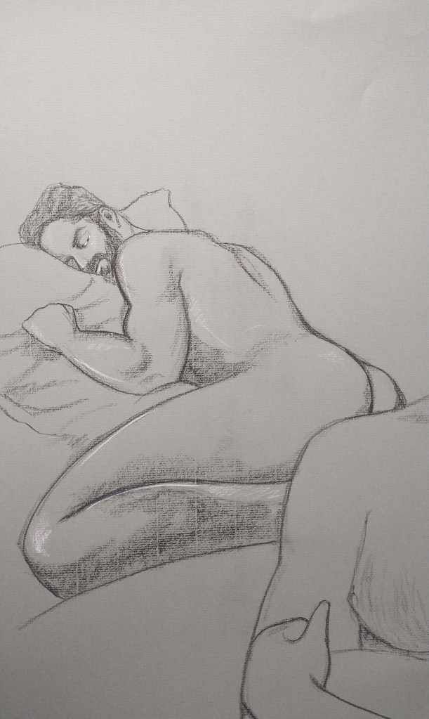 Two poses, one drawing.DetailStanding Erotic – seated
